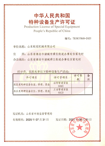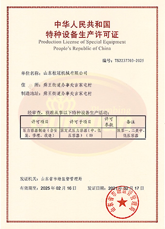 山東桂冠機械有限公司成立于2008年,注冊資金1600萬元,現(xiàn)有員工200多人,中高級技術管理人員45人,占地面積27000多平方米,生產車間面積12000多平方米。公司具備壓力容器產品的設計、制造(證書編號為:TS2237703-2025)、壓力管道安裝(證書編號為TS3837607-2025)全套壓力容器資質;通過國家ISO9001質量管理體系認證、美國ASME認證、歐盟CE認證;擁有建筑安裝機電工程專業(yè)承包叁級資質、建筑工程施工總承包叁級資質及對外貿易經營出口權…